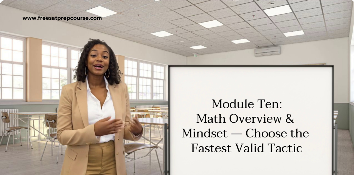 Get the full picture before you start. Learn the new adaptive format, timing, scoring, and how the test measures real-world skills—not just memorization. You’ll finish this module knowing exactly what “college-ready” means and how to build the right mindset.